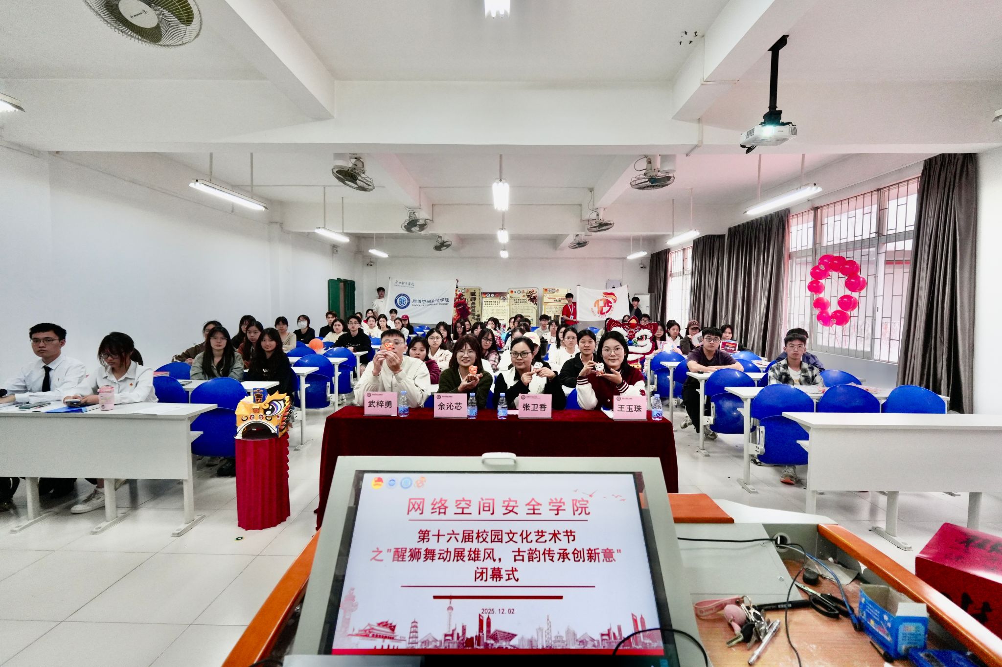 为弘扬中华优秀传统文化,营造浓厚的校园文化氛围,我院于12月2日下午14:00在T103正式举行第十六届校园文化艺术节之“醒狮舞动展雄风,古韵传承创新意”闭幕式!出席本次大会的领导及嘉宾有我院党委张卫香书记、团委书记余沁芯老师、辅导员王玉珠老师、武梓勇老师。