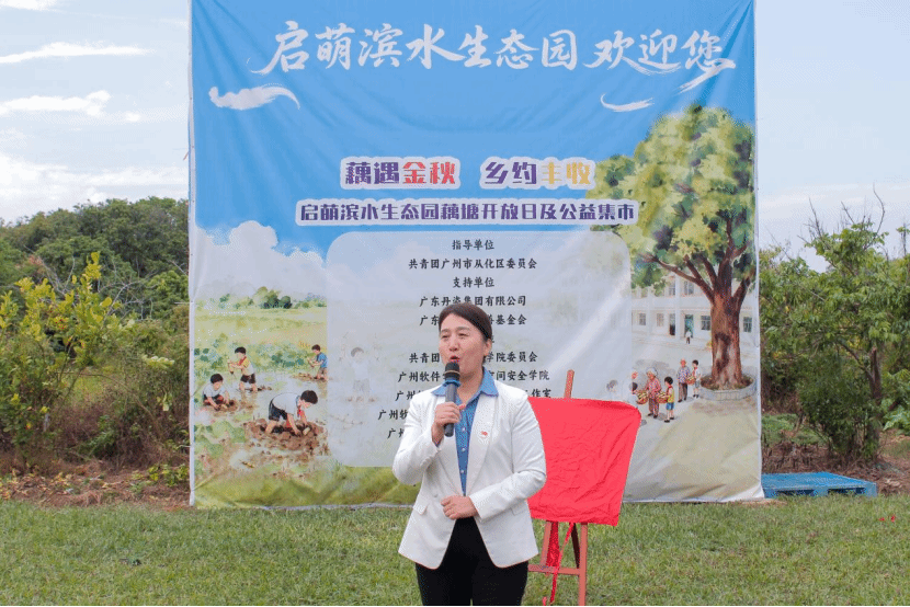 启萌志愿服务中心邓崇会理事长登台致欢迎词,字里行间满是对来宾的热忱与对乡村发展的殷切期许;我院党委张卫香书记、广东丹姿集团有限公司党总支书记、丹姿集团创始人之一左鸿雁书记先后致辞,既肯定了校地协同助力乡村丰收的丰硕成果,也表达了对乡村振兴事业的坚定支持与美好愿景。