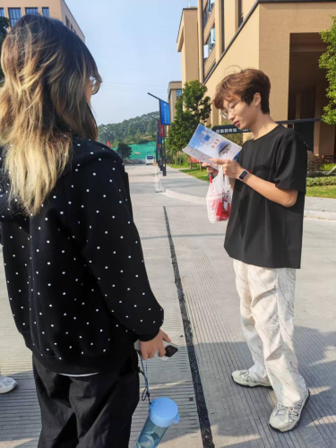 同时,同学们主动向过往师生普及垃圾分类、爱护公物等环保知识,以实际行动传递文明新风,彰显了学院育人成果。