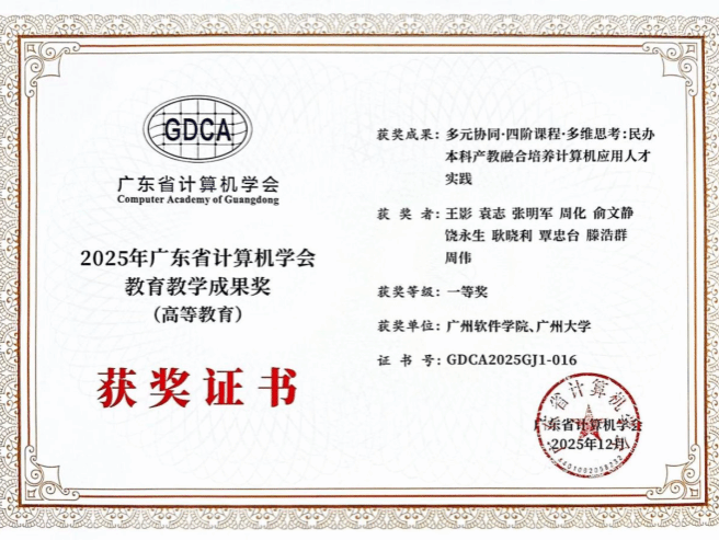会上,我院在教育教学与科研创新方面喜获丰收,一举摘得广东省计算机学会教育教学成果奖一等奖2项、二等奖1项,并获得优秀论文三等奖1项,充分展示了学院在应用型人才培养、教学改革与学术研究上的扎实功底与显著成效。