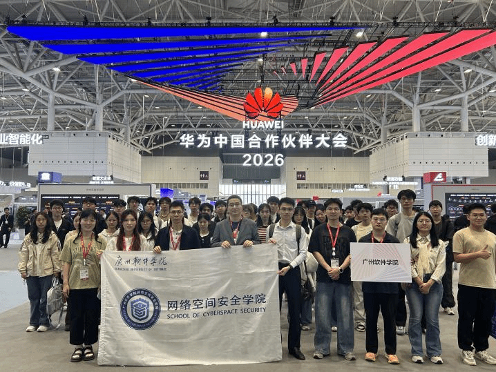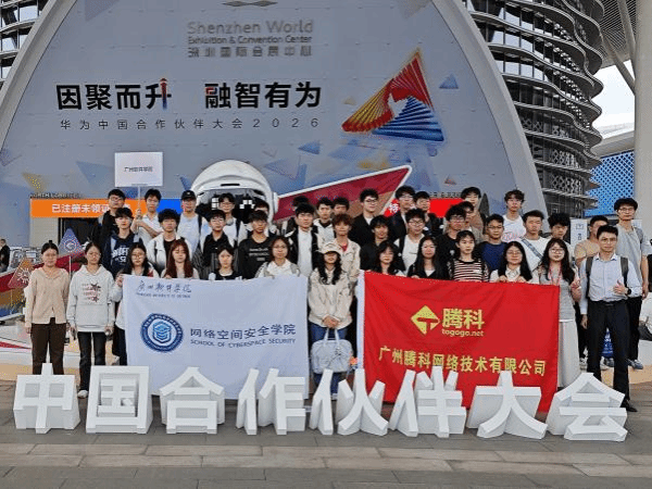 3月20日,网络空间安全学院周化院长、网络工程(云计算创新实验班)专业负责人覃忠台老师、广州腾科网络技术有限公司经理温利营先生、辅导员梁嘉琪老师等人带领38名2025级学生赶赴深圳国际会展中心参加华为中国合作伙伴大会。本次大会以“因聚而升·融智有为”为主题,为同学们搭建了近距离接触行业前沿、感知技术脉搏的优质实践平台。下午2:30 顺利抵达会场,入场后有序开启研学之旅。
