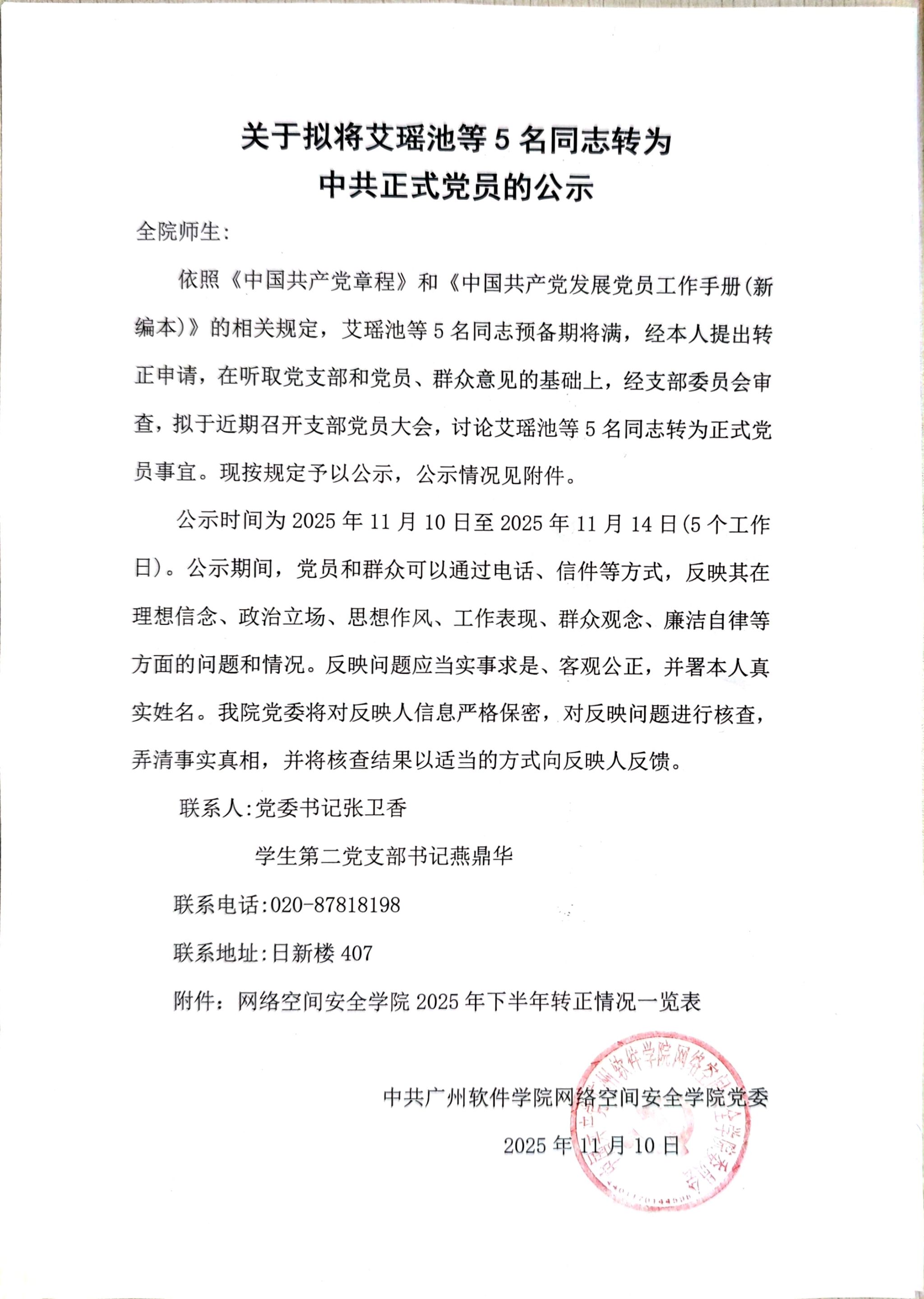 公示 | 关于拟将艾瑶池等5名同志转为中共正式党员的公示
