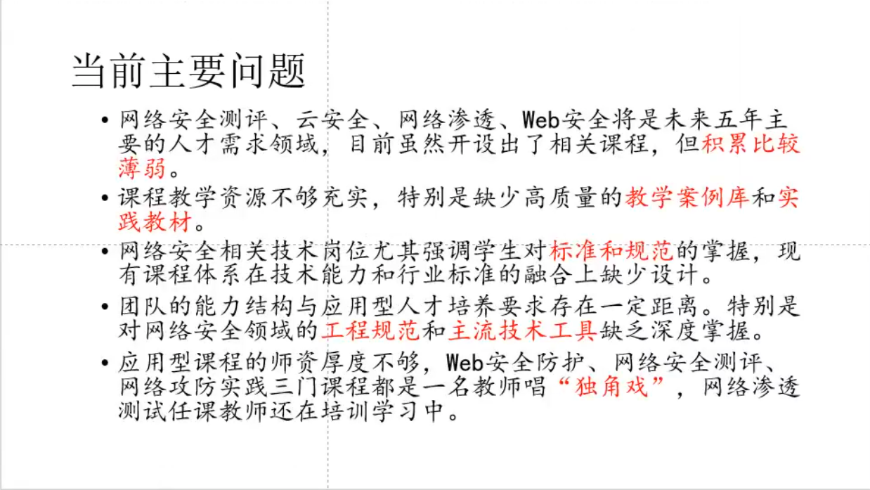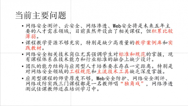 其次,李毓丽副教授从课程资源、师资力量、技术积累等多个方面向大家介绍当前遇到的主要问题。