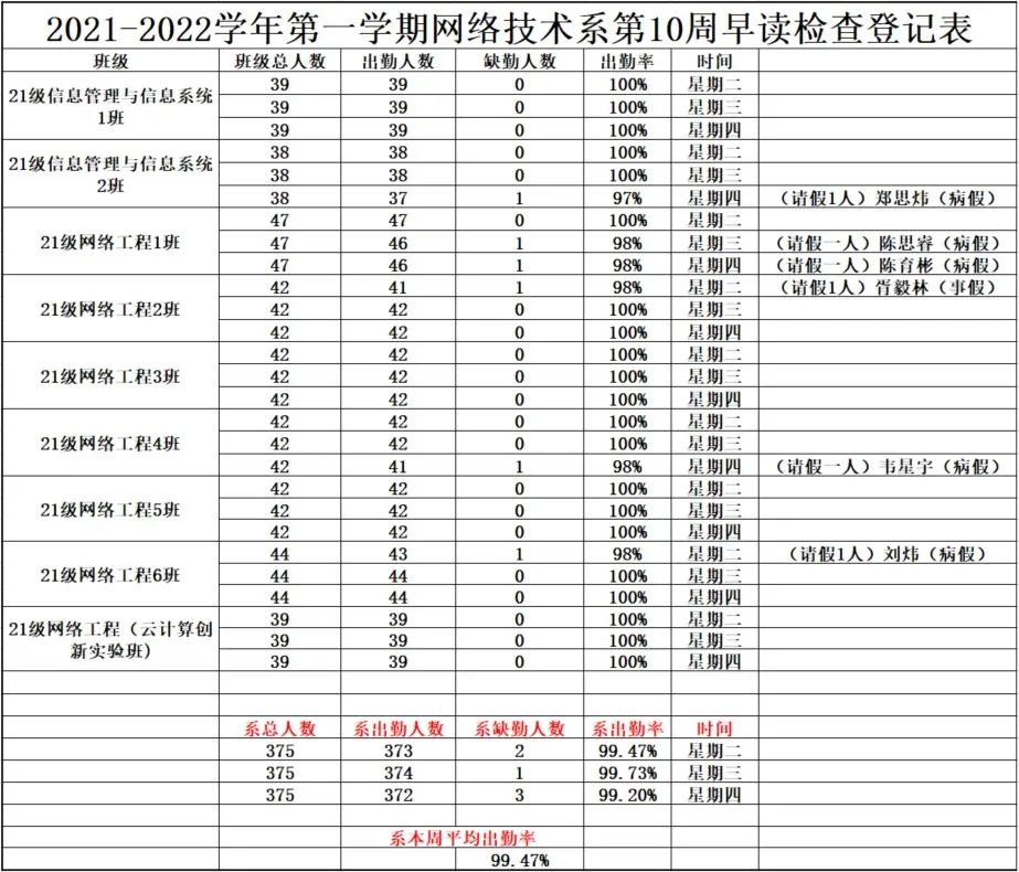 学风建设 | 网络技术系第10周早读检查报告