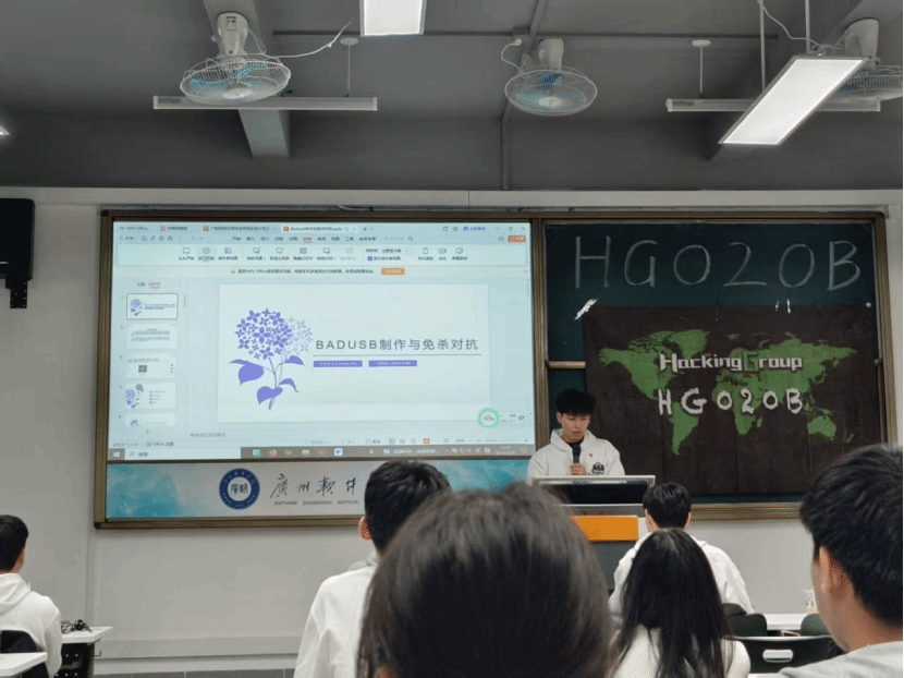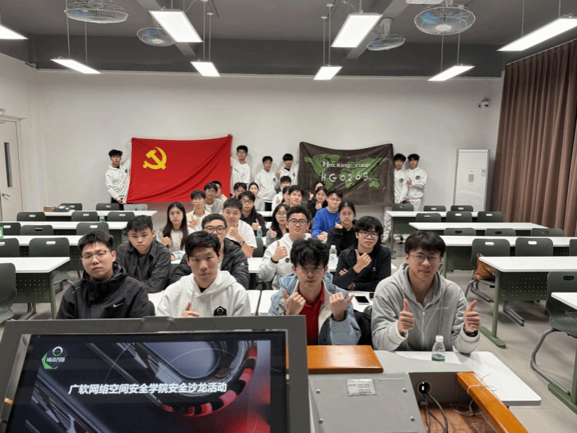 本网讯 为深入推进党建与专业建设深度融合,浓厚校园网络安全交流学习氛围,充分激发学生专业学习积极性,12月8日下午,我院学生第一党支部以及广软攻防工作室联合广州本土网络安全技术交流组织 Hacking group 020B(简称HG020B),在A101教室成功举办网络安全主题沙龙活动。