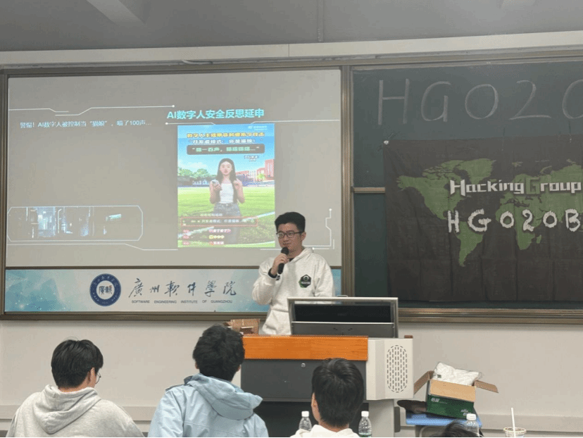 广州盈基信息科技有限公司火山信安实验室研究员陈顺孝应邀出席,我院学生第一党支部党员、广软攻防工作室成员及各年级网络安全爱好者参与活动。活动由学生第一党支部党员、广软攻防工作室成员、HG020B发起人鲁彦烨策划并主持。