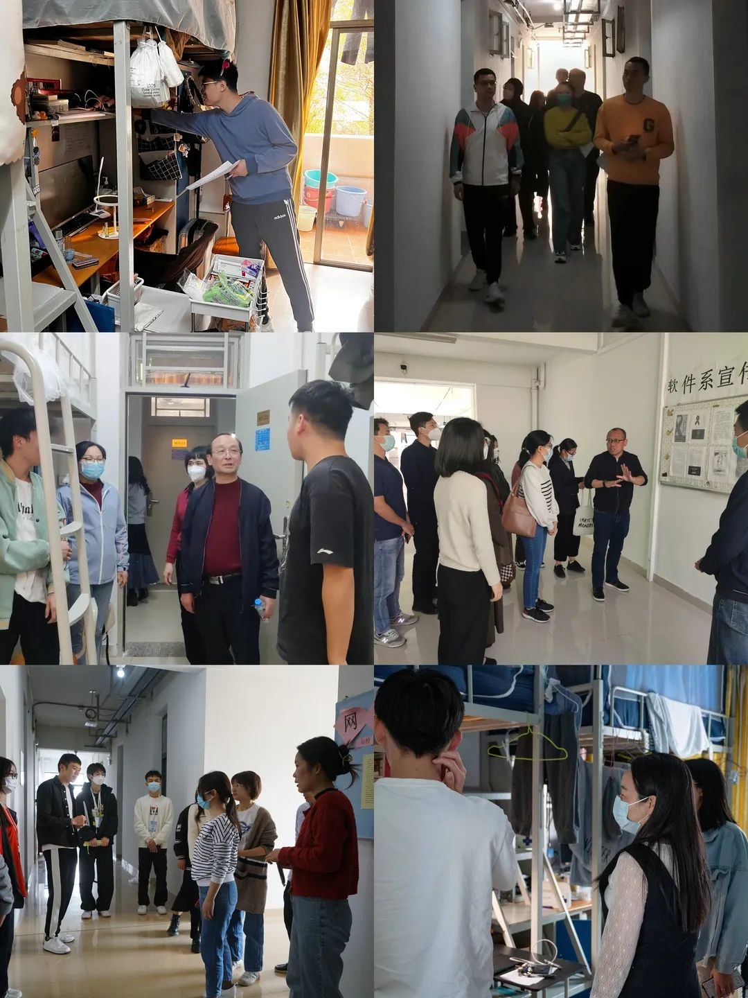 开学第一周,各系主任、党总支书记、学工办主任、辅导员老师前往学生宿舍进行新学期的“爱国卫生运动”大检查。了解学生返校后的思想动态和身体状况,提醒同学们整理好个人内务并且调整好作息,严禁使用大功率违规电器,时刻保持安全防范意识,并叮嘱同学们养成每日打扫宿舍卫生的良好习惯,希望同学们做好新学期学习规划,同时不忘坚持体育锻炼,以饱满的精神状态投入到新学期的学习和生活中。