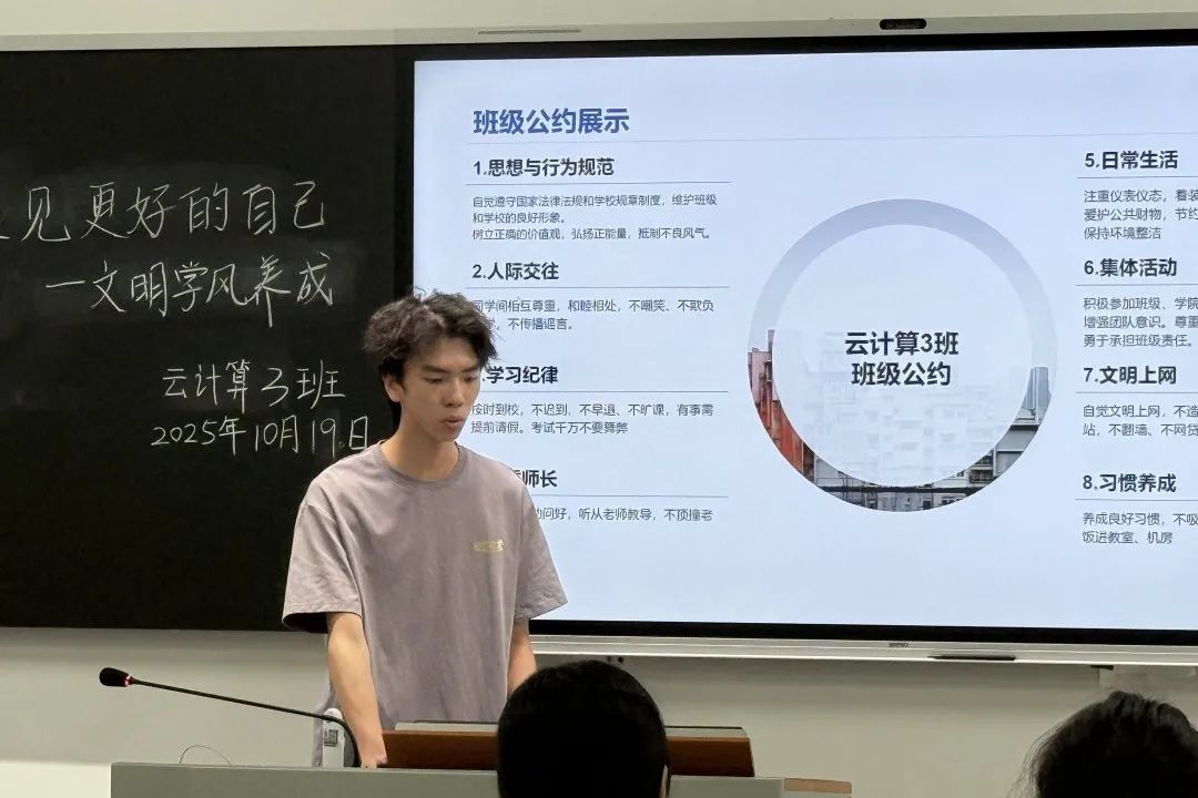 各学院针对学生特点锚定学风建设重点。软件与人工智能学院解读校院规章、研讨学术诚信与课堂纪律,助力新生适应大学学习;数字经济与管理学院结合班级现状修订《班级公约》,新增课堂纪律、作业提交、互助学习条款,以制度强化规则意识,推动学风建设融入日常。