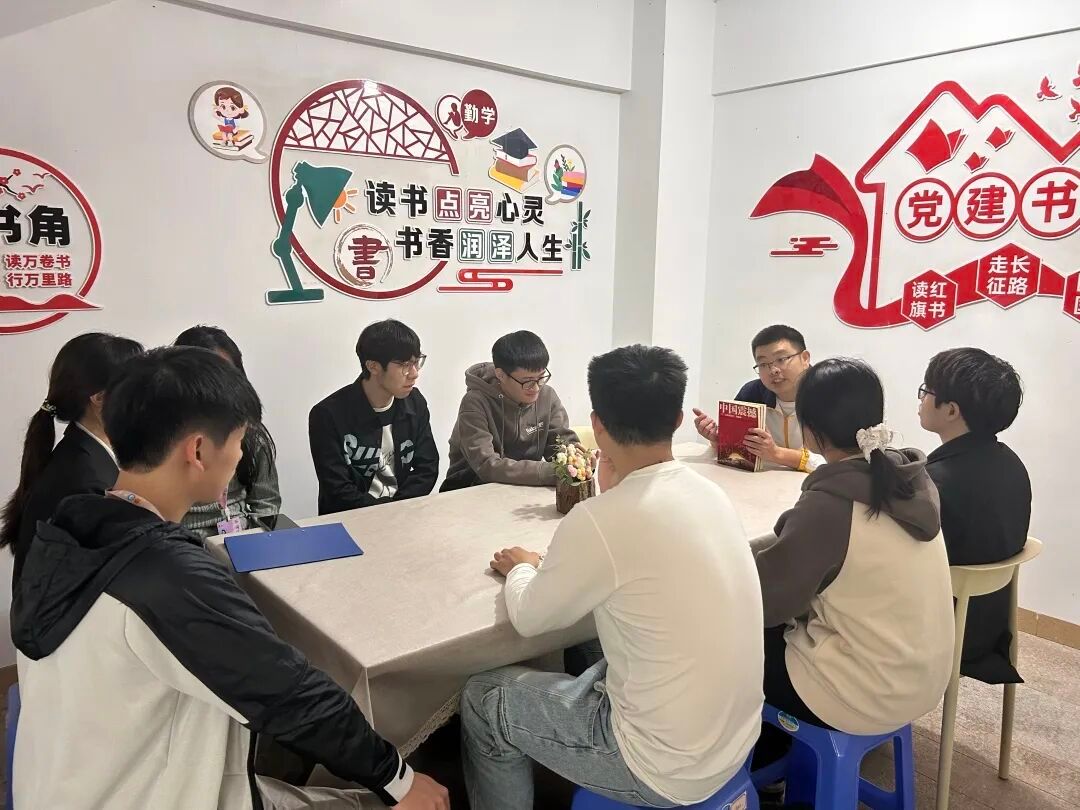 在宿舍区精心建构“党建书屋文化阵地”。该阵地集外语学习角(依托外国语学院专业资源,提供丰富学习资料并面向全院共享)、文化交流、休闲阅读、党建宣传等多功能于一体,成为学生课余重要集聚地。旨在通过提供学习场所,丰富学生的课余生活,并加强学生的党建知识教育,定期举办外语角活动、读书分享会和党建知识讲座,以提高学生的外语水平和政治素养,优化学习环境,浓厚学习氛围,促进资源共享与专业辐射。