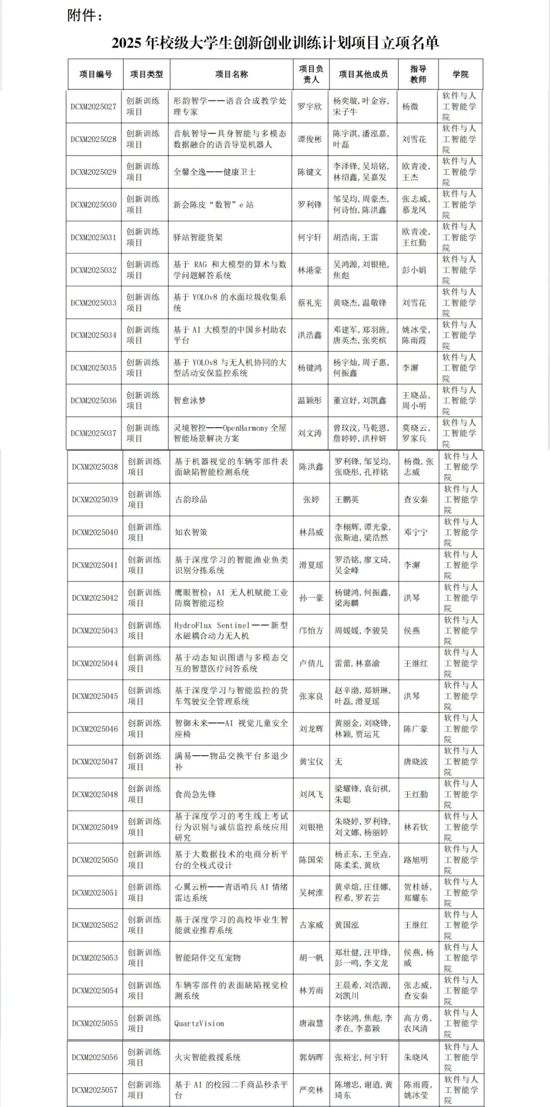 软件与人工智能学院大学生创新创业训练计划立项项目