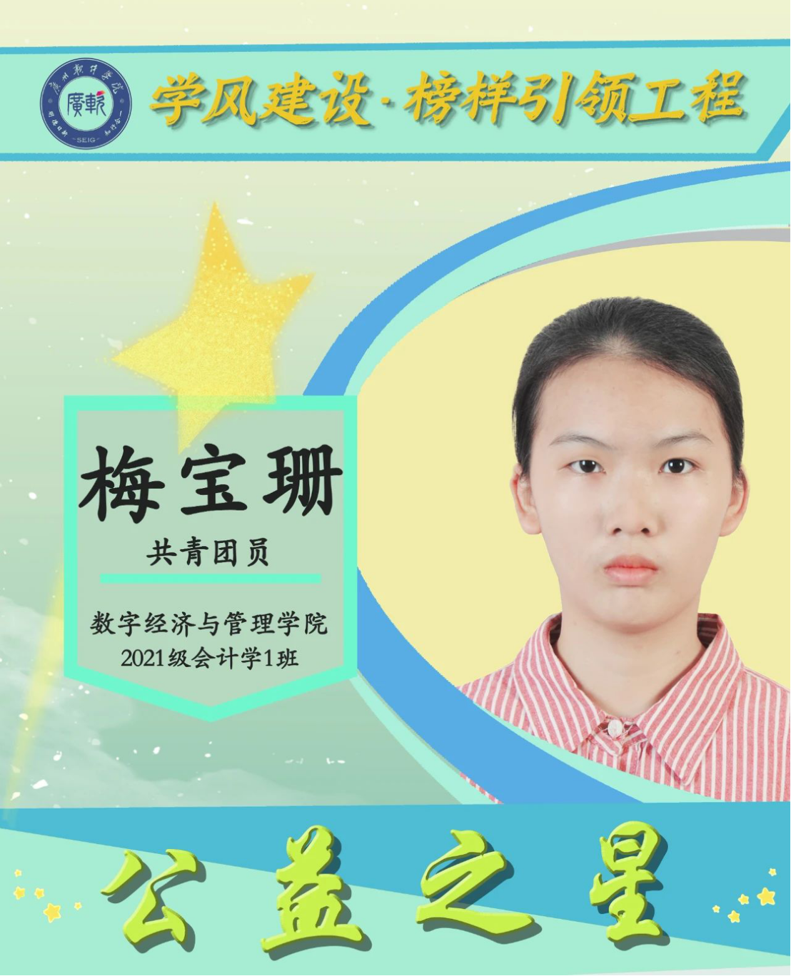 任数字经济与管理学院学生会主席,曾任原财经系R.S承梦志愿服务队队长。目前志愿时长为436小时6分钟,曾获得2023年广州软件学院社会实践优秀个人称号,参加过星语志愿活动、无偿献血志愿活动“一起云支教”志愿活动、核酸检测志愿活动、连续三年参加三下乡社会实践活动。