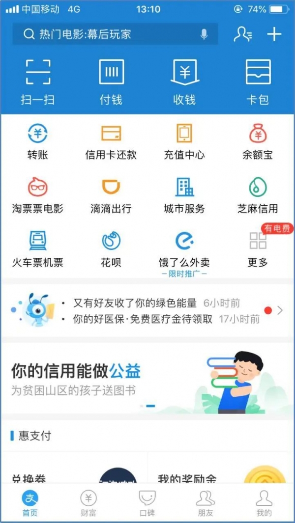 1. 打开支付宝APP首页。