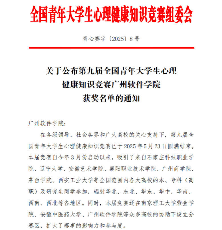 组委会公布第九届全国青心竞赛广州软件学院获奖名单的通知