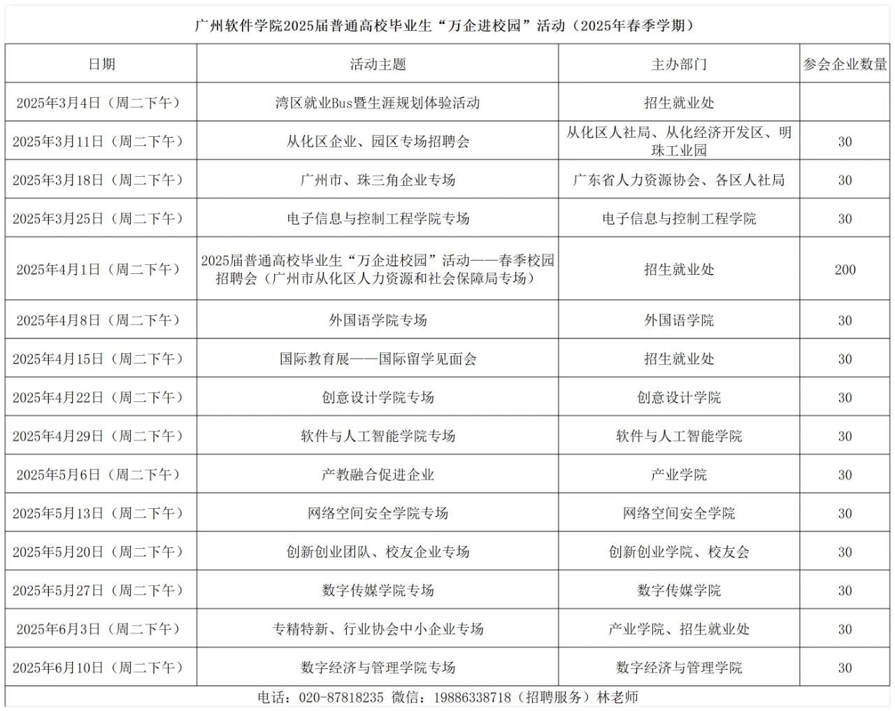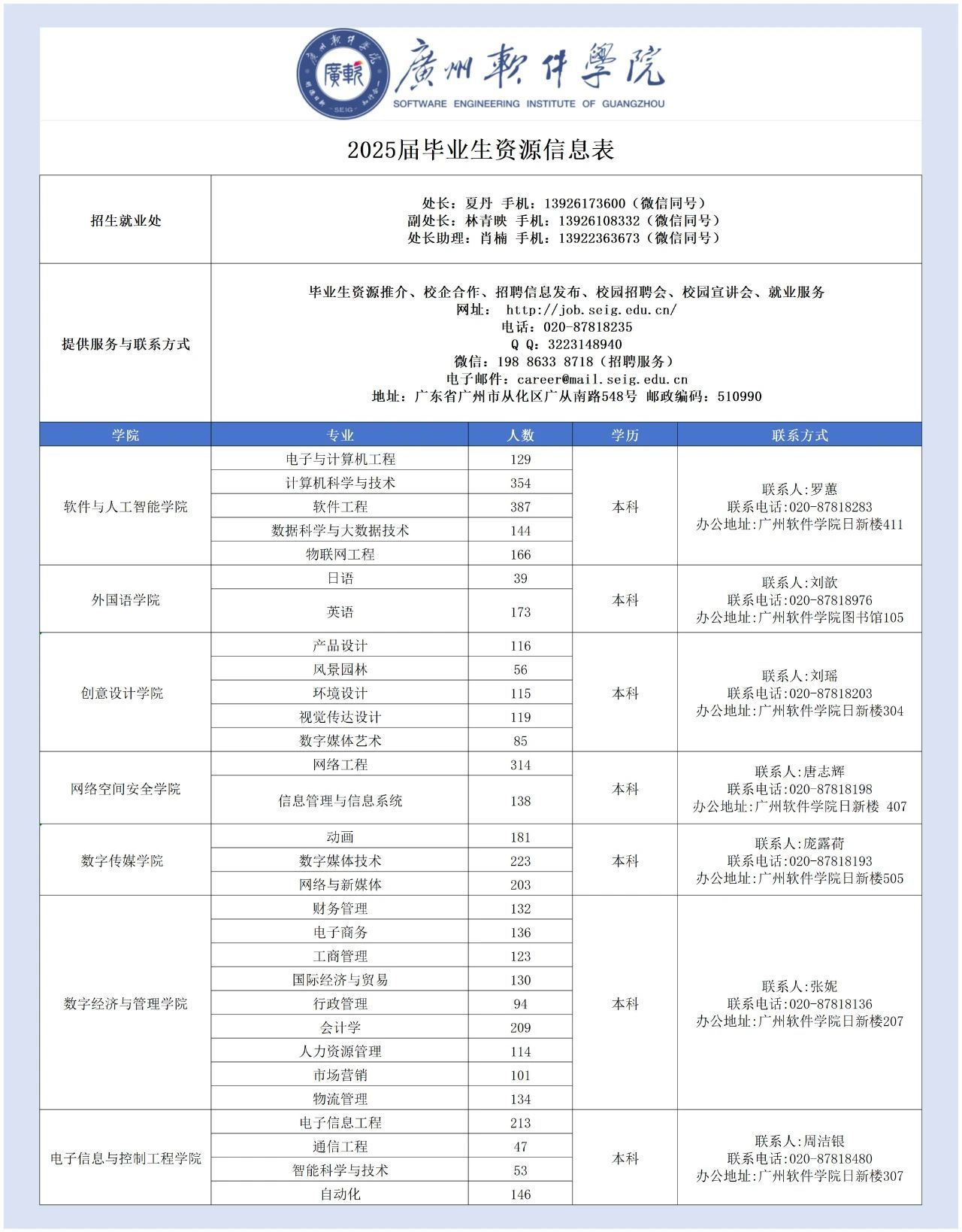 联系人:广州软件学院招生就业处招聘服务老师