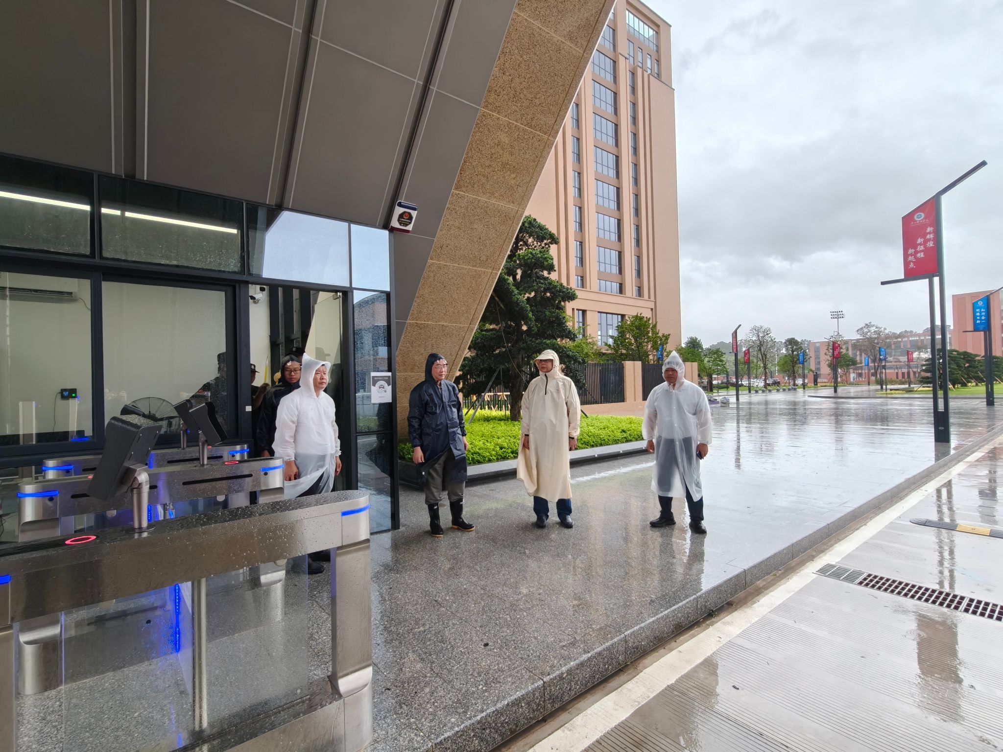 学校领导和相关部门检查防台风准备
