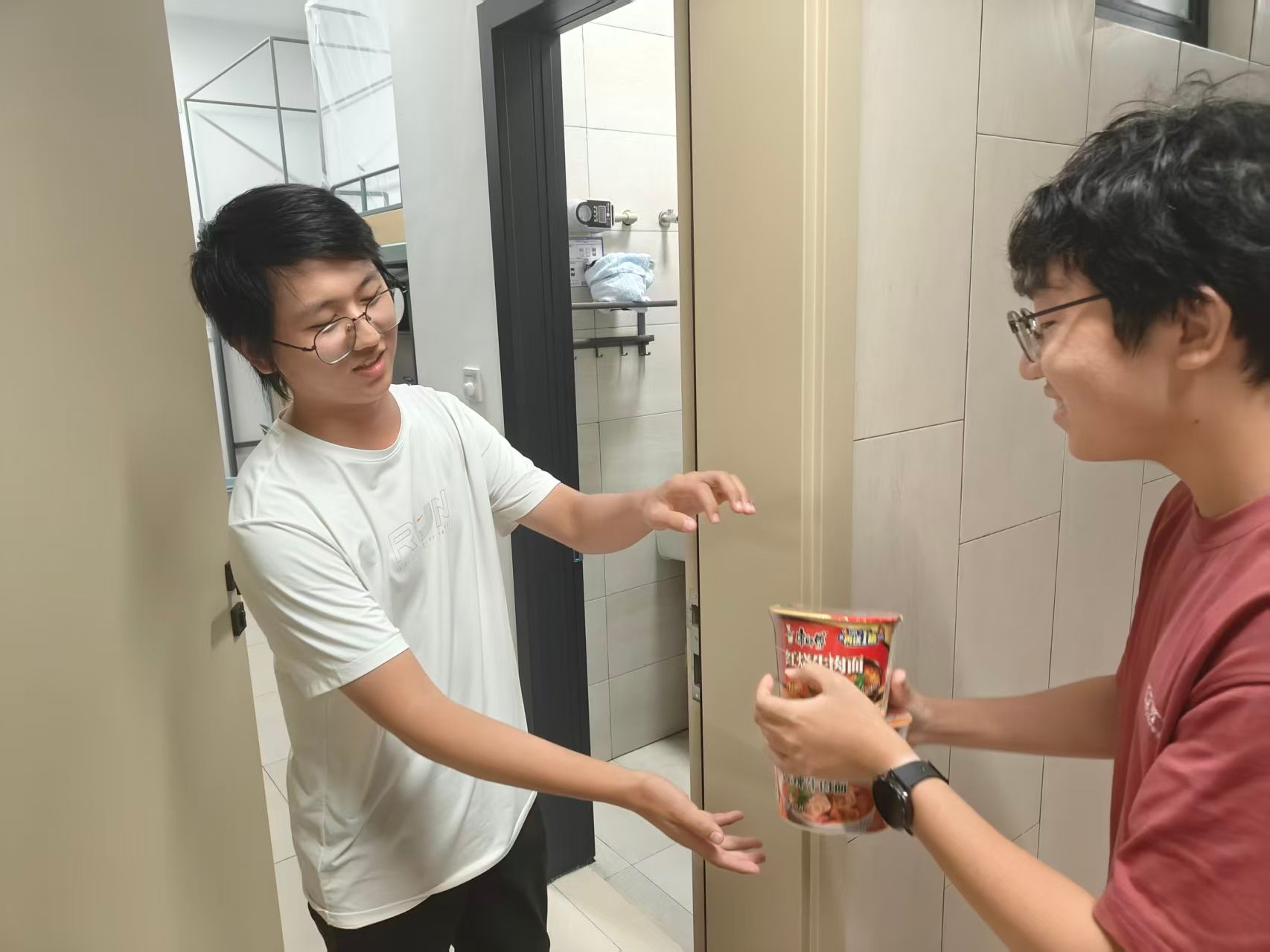 在这场守护行动中,广软学子也展现了非凡的青年担当。可爱的导生、新生学生骨干们迅速响应,成为了老师们的得力助手和同学们的贴心伙伴,他们协助老师进行安全巡查,不放过任何一个角落;他们为同学采购物资、送物资上门,奔跑的身影是楼道里最靓丽的风景;他们与老师们并肩作战,将学校的关怀精准投递到每一间宿舍。