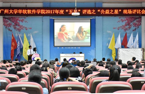 本网讯 4月17日下午14点30分,2017年度“五星”评比之“公益之星”现场评选在礼堂一举行。出席此次评选活动的嘉宾和评委有学院学生处李文娟副处长、电子系党总支李应东书记、软件工程系党总支徐向春书记、国际经贸系党总支张洪华书记、数码媒体系党总支林亮书记、管理系党总支张俊书记、游戏系党总支陈石宇书记、游戏系分团委书记兼学工办主任许恒梅老师、游戏系学生会秘书长闫新利老师以及各系的老师与学生代表们。
