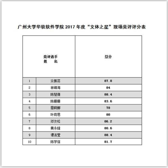 本次竞选的得分并非是最终文体之星结果,五星评选委员会将会综合初审、现场成绩和终审,最终评出“文体之星”获得者,最终结果将会与其他星评选结果一同公布。敬请期待。