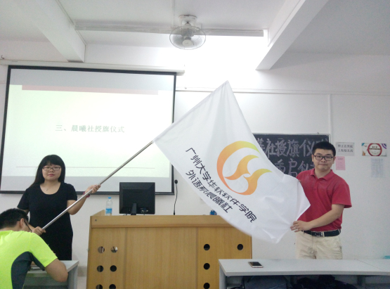 刘歆老师为晨曦社授旗