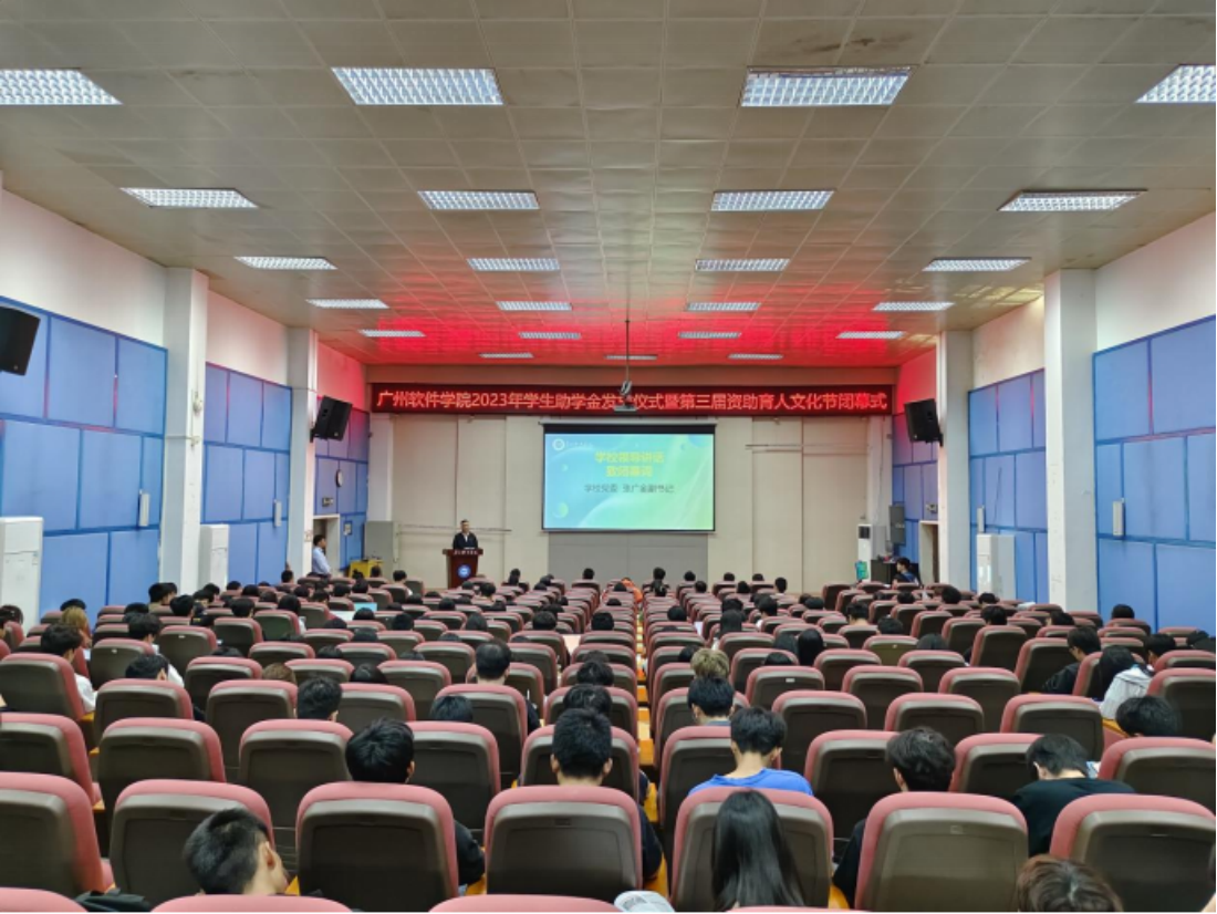 12月12日下午,广州软件学院2023年学生助学金发放仪式暨第三届资助育人文化节闭幕式在学校礼堂一举行。