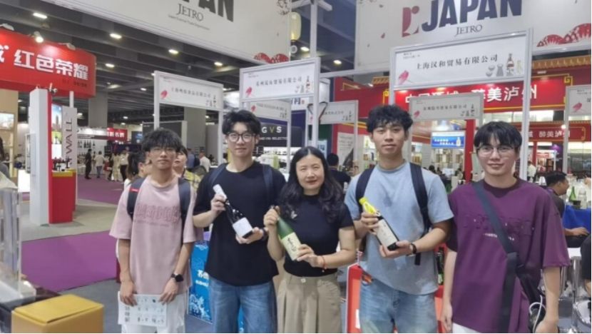 冯英老师为学生讲解展馆注意事项,并指导学生利用展馆活动提升英语听说能力和交流技巧。随后老师们带领学生在酒展内与各国参展商沟通交流。此次实践活动开阔了学生视野,使学生对商务洽谈有了清晰认识,拓展了未来就业方向。外国语学院将持续组织师生参加展会,为有志于成为会展英语、日语人才的同学保驾护航。