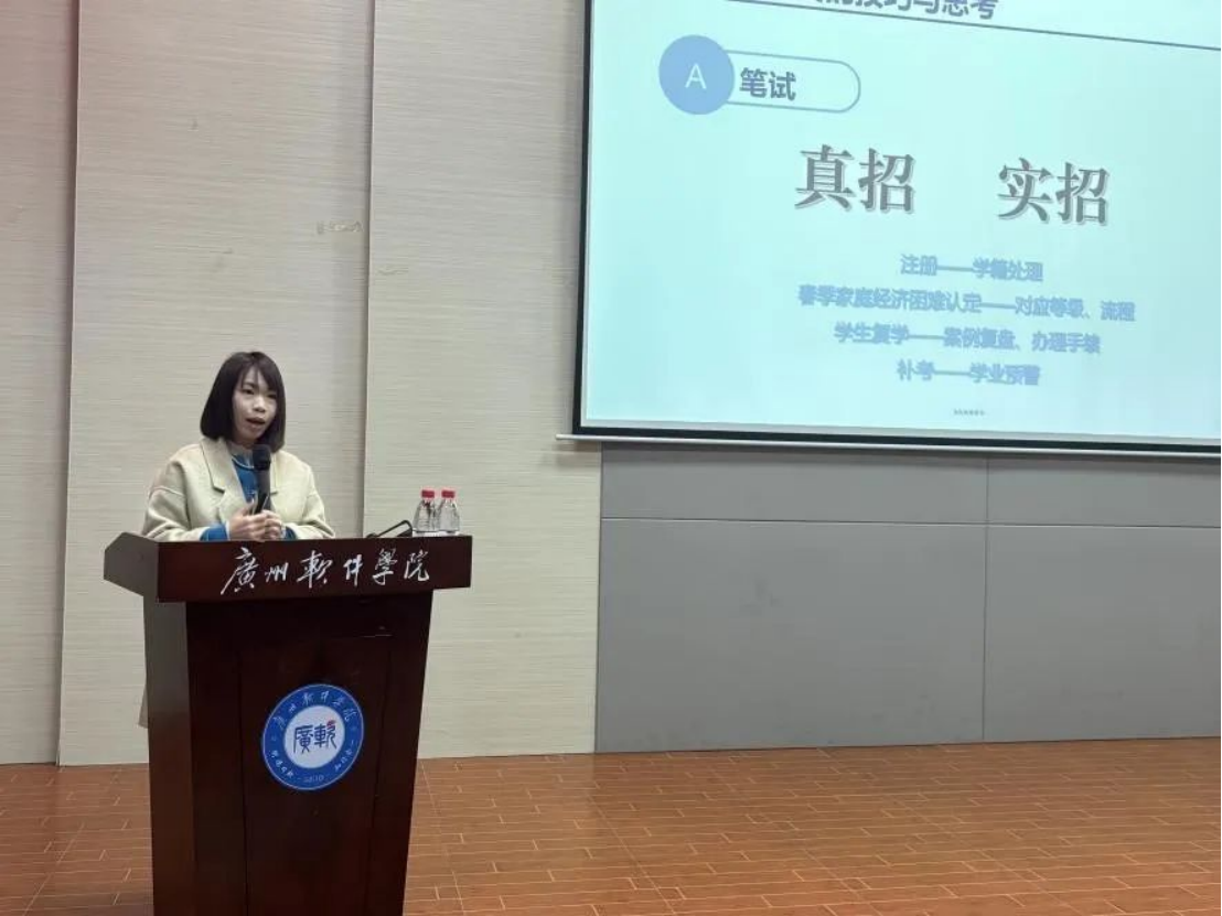 学生处陈石宇处长作2023学年学生工作总结及新学期工作布置,他表示我校学生工作始终坚持立德树人根本任务,构建思政育人体系,提升网络思政工作实效,全域全程精准资助,维护学生身心健康,持续推进“四有”辅导员队伍建设,建设蓄能型校友平台。他对2023学年学生工作的重大事项、取得的成绩和工作增长点进行了盘点回顾,并就做好学生工作的重难点提出工作思路。希望全体辅导员继续保持严谨踏实的工作作风,创新工作方法,培育学生工作的品牌,打造广软学生工作的特色。