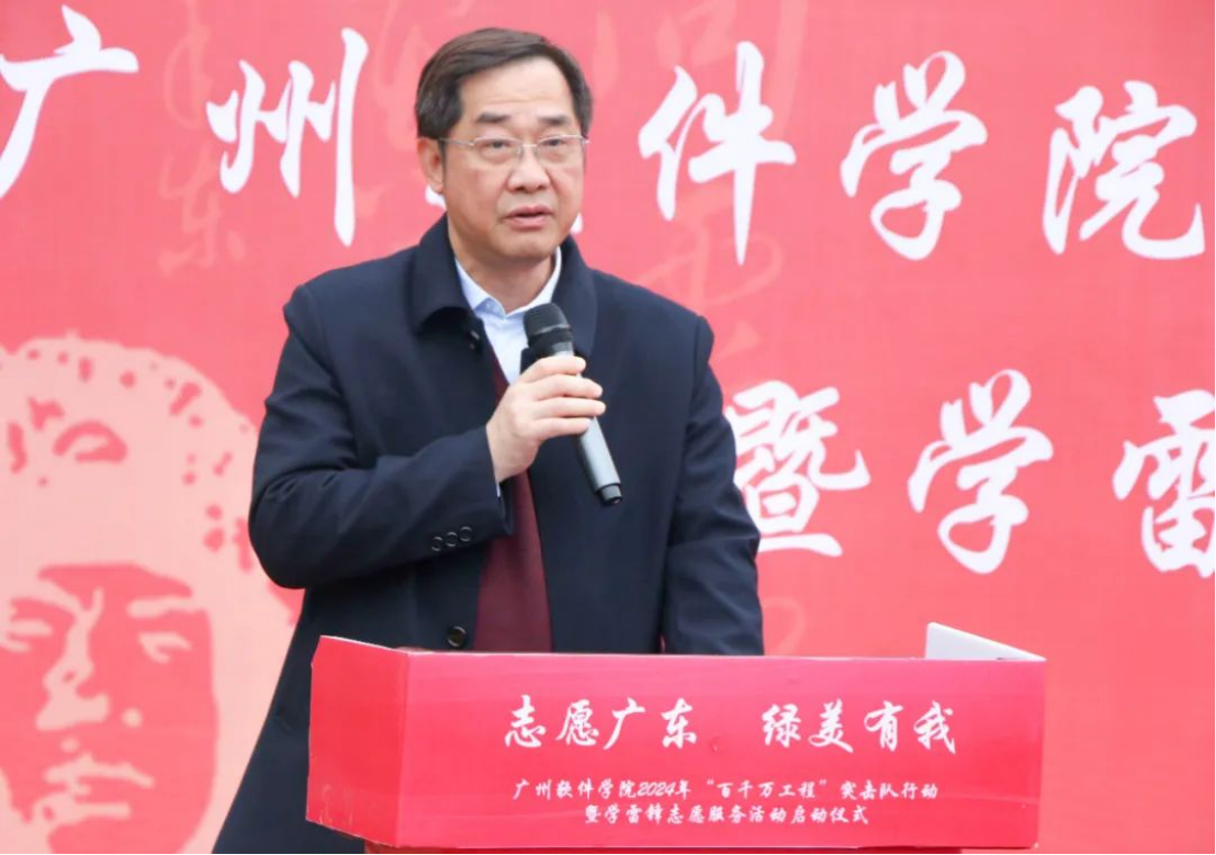 3月5日,广州软件学院举办2024年“百千万工程”突击队行动暨学雷锋志愿服务活动启动仪式。从化区侨联黎健强主席、学校党委刘友坤书记、张广金副书记参加。