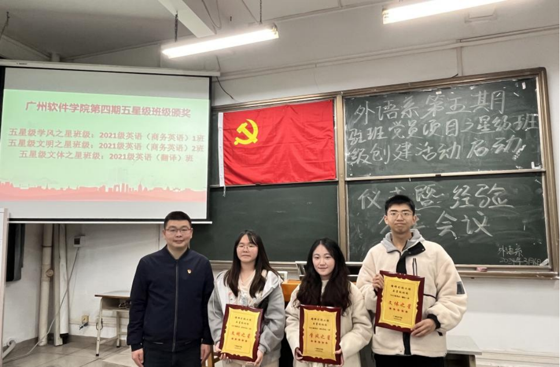 会上进行了第四期星级班级创建成果颁奖。随后,获得我校第四期五星级学风之星2021级英语商务1班、文明之星2021级英语商务2班、文体之星2021级英语翻译班将各班独特的建设方法、建议积极分享给现场的班级,现场班级代表收获满满。