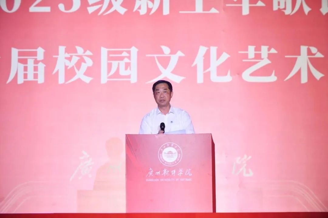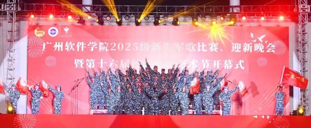 9月27日,广州软件学院2025级新生军歌比赛、迎新晚会暨第十六届校园文化艺术节开幕式在江门校区足球场盛大启幕。