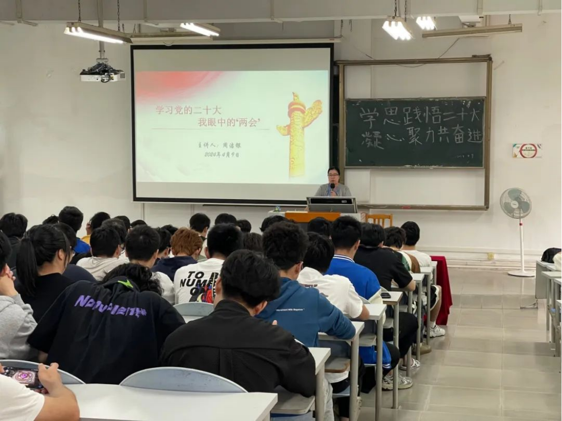 为深入学习习近平新时代中国特色社会主义思想,全面贯彻落实党的二十大和二十届二中全会精神,电子系21通信工程1班、21自动化1班、21自动化2班、21自动化3班联合开展了“学习党的二十大 我眼中的‘两会’”主题教育班会。本次活动由电子系学生党支部书记周洁银老师主讲,带领同学们深刻领悟“两个确立”的决定性意义,不断增强“四个意识”、坚定“四个自信”、做到“两个维护”,坚持为党育人,为国育才,落实立德树人根本任务,确保新时代青年紧密地团结在以习近平同志为核心的党中央周围,高举中国特色社会主义伟大旗帜,培养德智体美劳全面发展的社会主义建设者和接班人。