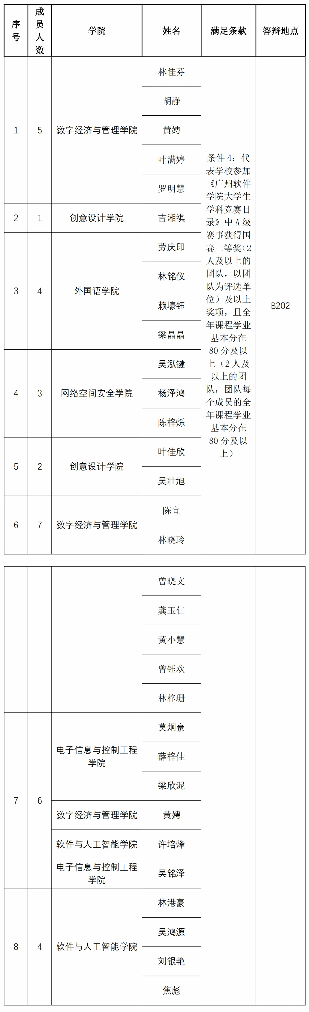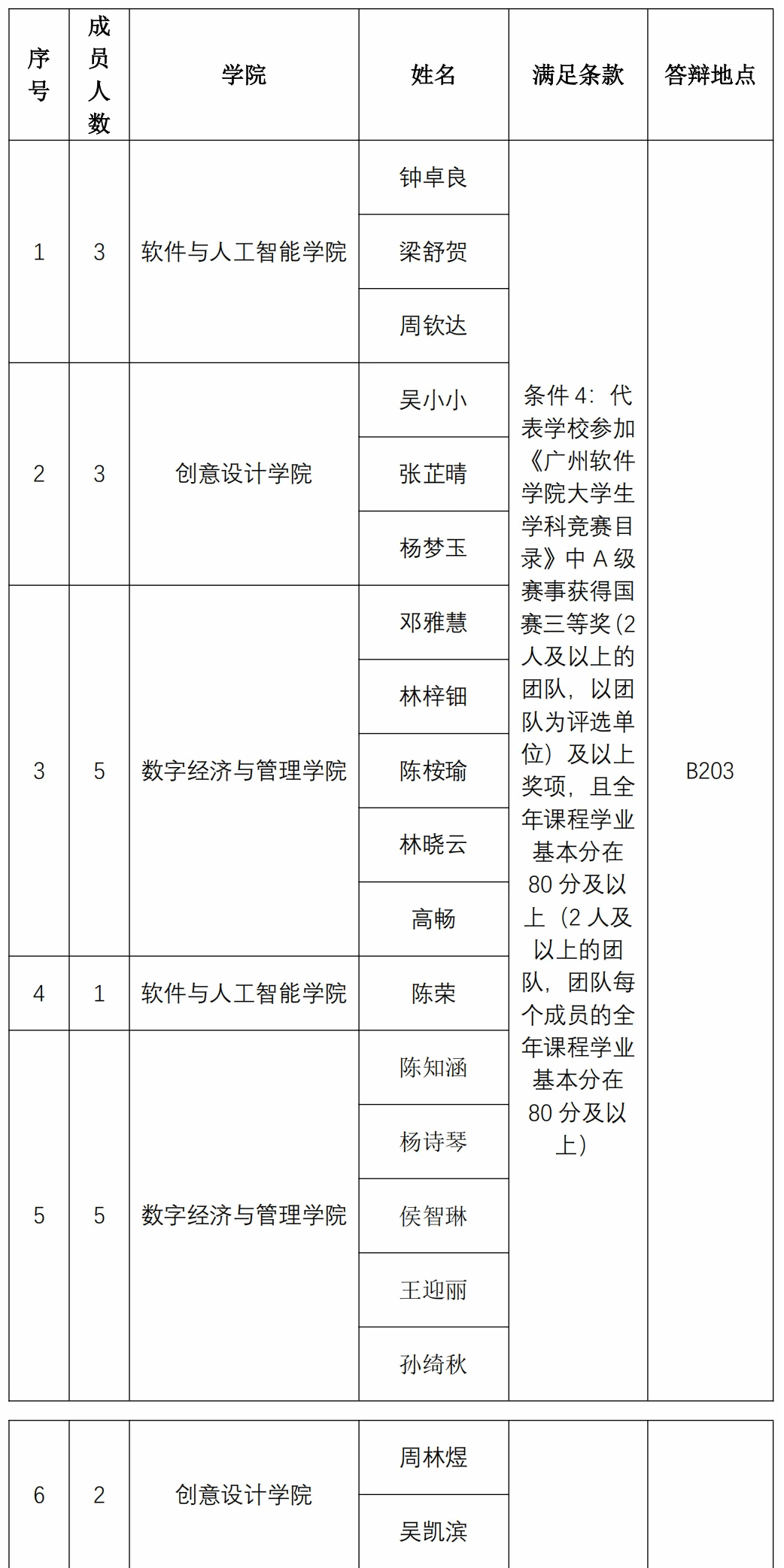 其中,以条件1(一学年必修学业基本分90分及以上,且名列专业第一)申报的共有22人,以条件4(代表学校参加《广州软件学院大学生学科竞赛目录》中A级赛事获得国赛三等奖(2人及以上的团队,以团队为评选单位)及以上奖项,且全年课程学业基本分在80分及以上(2人及以上的团队,团队每个成员的全年课程学业基本分在80分及以上))申报的共有14个团队(或个人)。