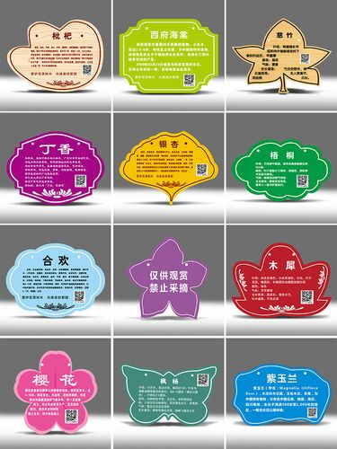 选用亚克力双层板(防水防晒)或防腐木,尺寸25cm×15cm,印刷内容含树种信息、二维码、手绘图案(由获奖设计稿定稿)。