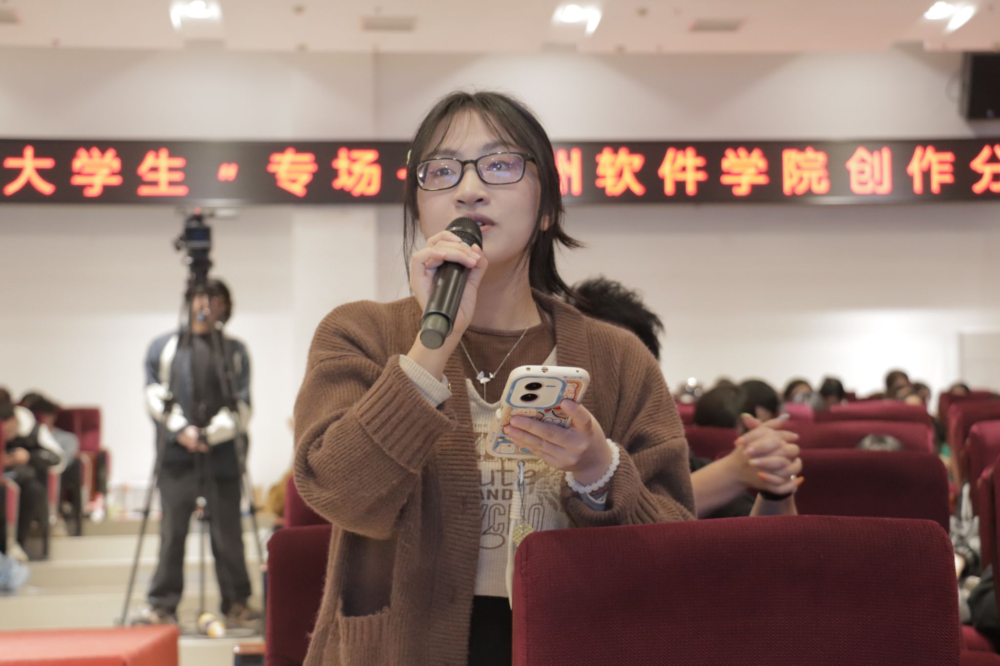 创作分享会以一场充满文化底蕴的开场表演温情启幕。由学校基础与通识教育学院张海鸥教授作词、李超凡老师作曲的原创作品《溪流水・大学之歌》,融合《诗经》体歌词与交响化编曲,由弦歌教育教学团队教师与学生合唱团共同演绎,悠扬的旋律,精彩的演出瞬间拉近了科技与人文的距离,展现了学校中华优秀传统文化教育的底蕴和丰硕成果。
